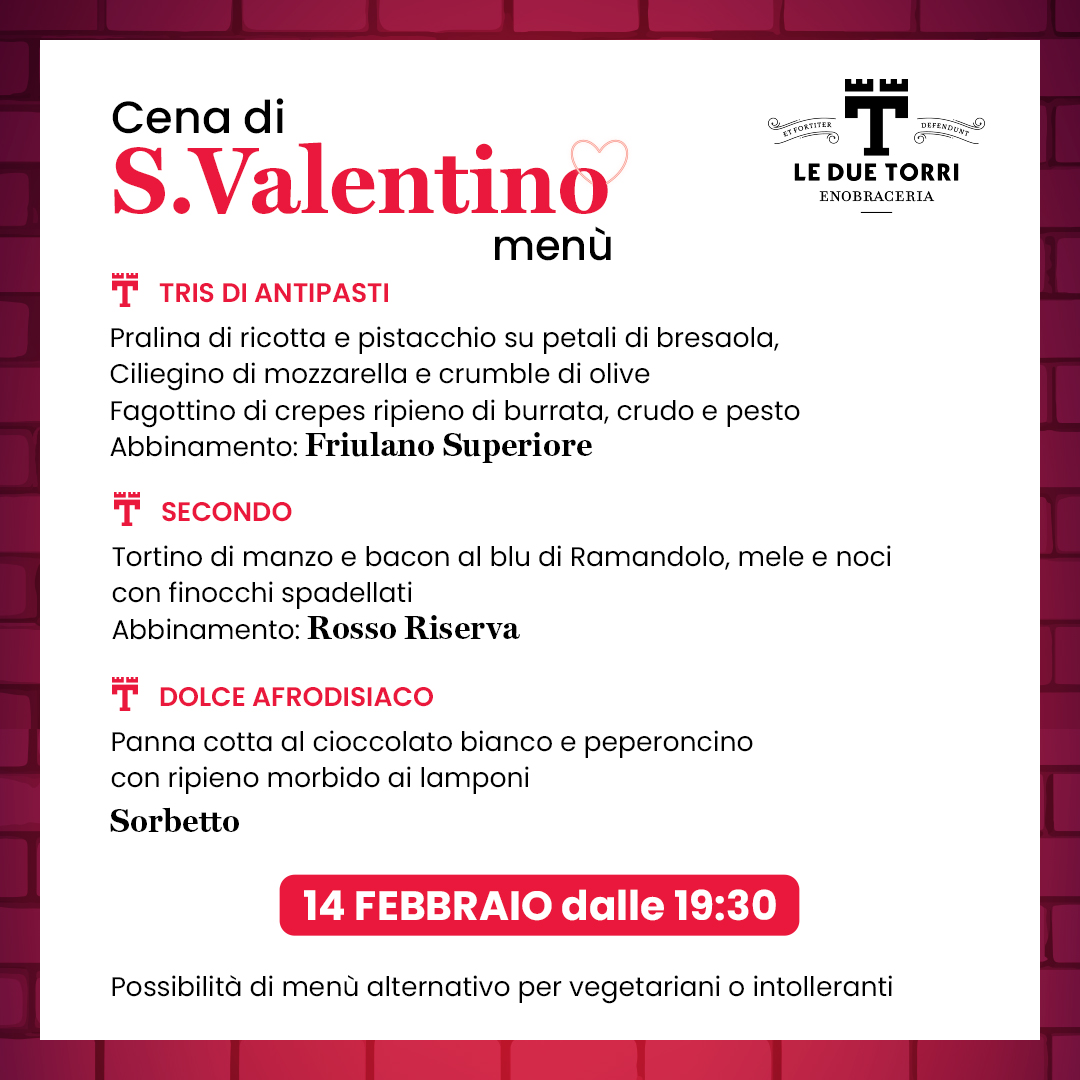 Il 14 febbraio alle Le Due Torri ti aspetta una serata che unisce piacere e divertimento: un menù pensato per sorprendere il palato, vini friulani d’eccellenza e uno show irriverente che trasforma tabù e quotidianità in risate senza compromessi.
